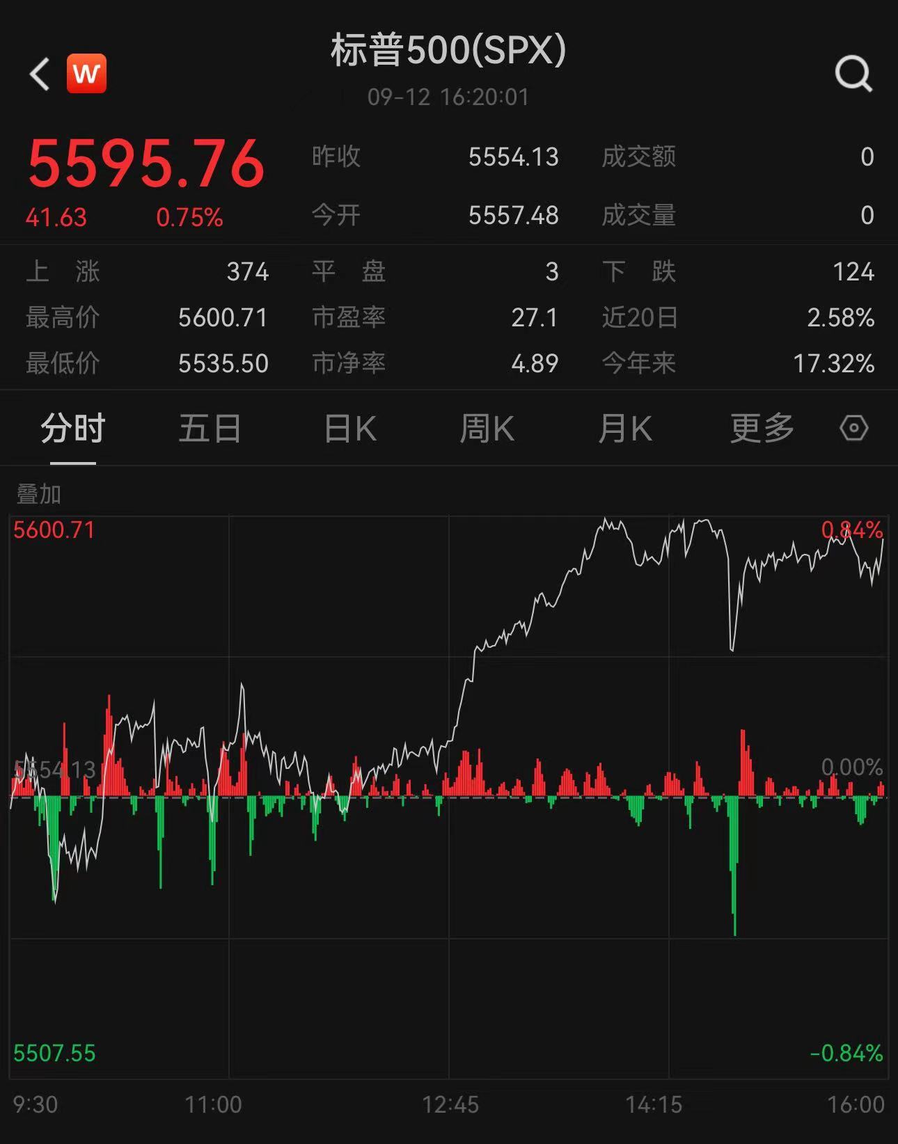 (标普500指数分时图,来源:Wind)