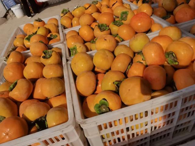 由于柿子是一种迟熟的水果,为了保证质量和颜色,果农在采收时会优先选择表皮青黄的柿子。