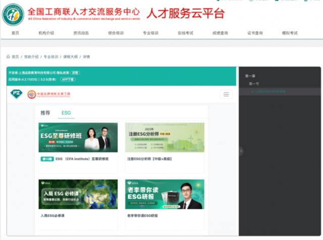 目前,ESG 我国仍然是一个比较新颖的概念,学校教育不能提供足够的知识储备,短期内也不能导出相关人才,所以针对 ESG 人才培训内容和资格认证热度开始迅速提升。升。