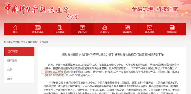 注册 ESG 分析师是由中国科技金融促进会全国工商联人才交流服务中心共同指导,毕业颁发全国工商联人才交流服务中心和中国科技金融促进会共同盖章的《注册 ESG 分析师认证证书。