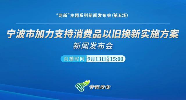 9 月 13 日 15 当时,市政府新闻办公室将召开宁波市新旧消费品置换实施方案新闻发布会,邀请市发展改革委、市民政局、市住房和城乡建设局、市交通局、市农业农村局、市商务局相关负责人对政策发布进行解读,回答记者提问。这也是“两新”主题系列新闻发布会的第五场。
