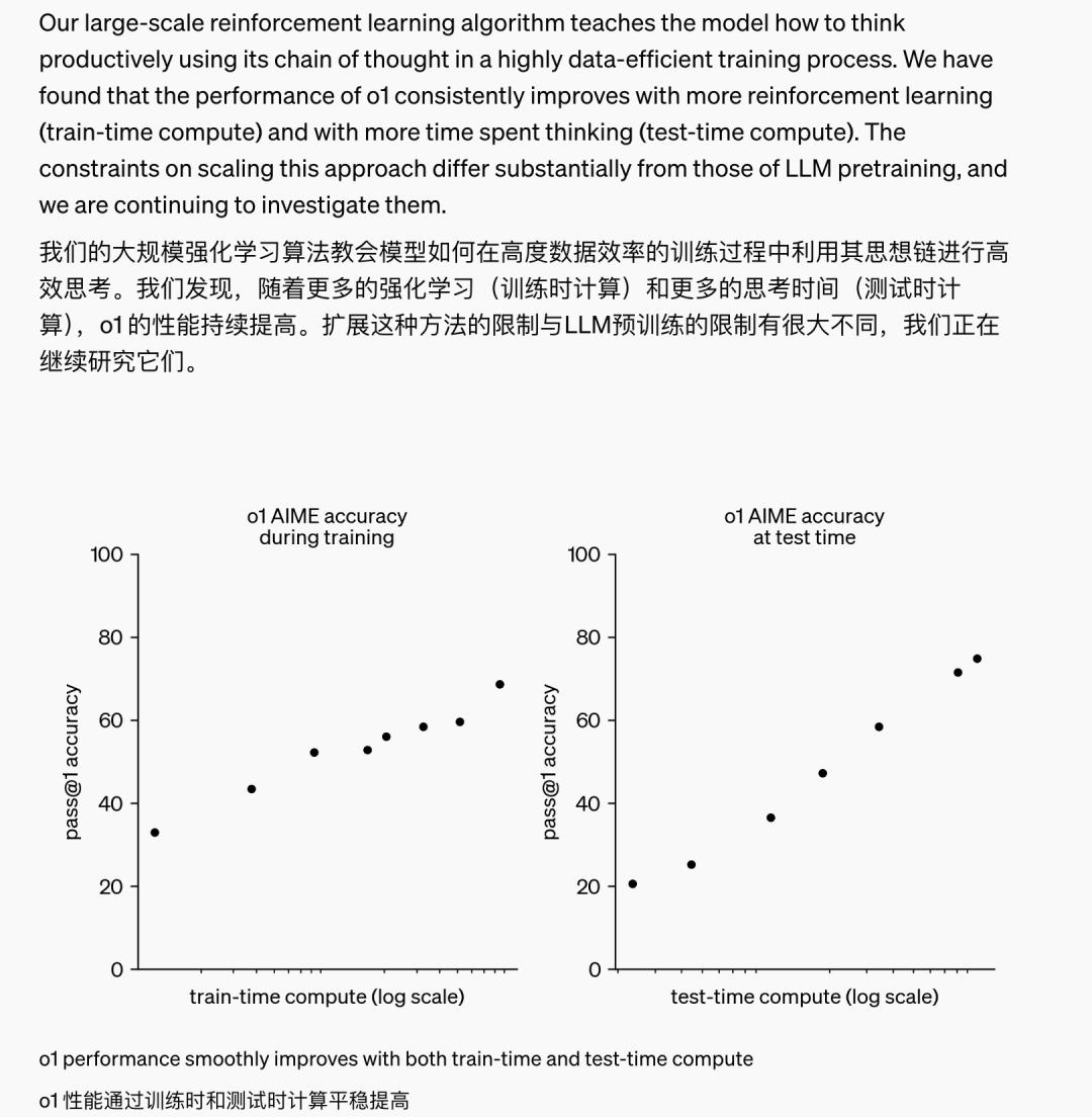 而且,在以前的顾客中 prompt 在指导中,模型可以回答哪些答案,最终会受到模型能力的限制。通过不同的训练方法训练出来的 o1 模型,很有可能凭借自己的推理,超越自己训练材料的限制,产生更高级、更准确的答案。