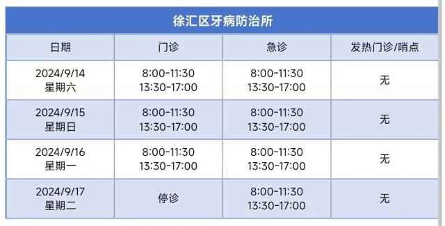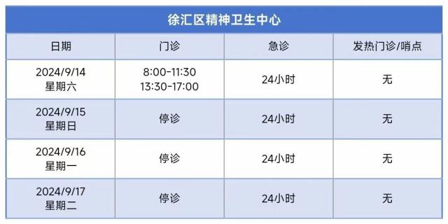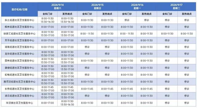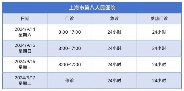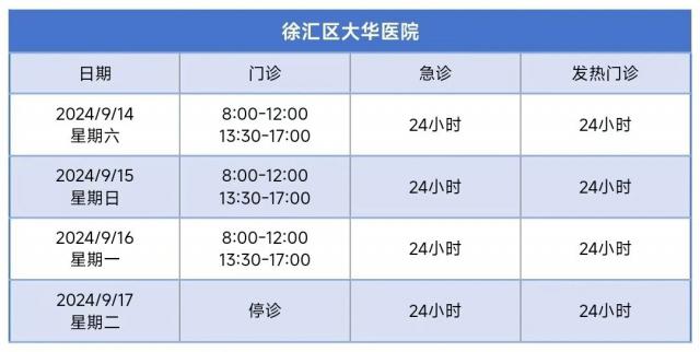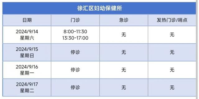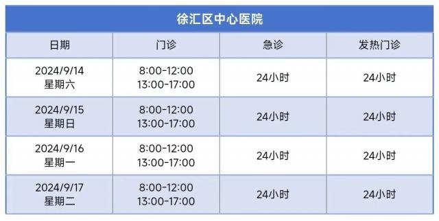 徐汇区中秋节假期属医疗机构门诊部安排,请检查!