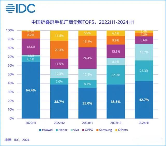 技术水平方面,作为中国的老手机厂商,荣耀的底蕴毋庸置疑。品牌认可度方面,2024年上半年国内折叠手机市场荣耀以23.3%的份额排名第二,仅次于华为,略高于vivo、OPPO,远远超过三星和同类产品。销售数据可以证明,荣耀在折叠手机市场的消费者认可度较高,也为荣耀未来可能推出的三折叠手机奠定了市场基础。