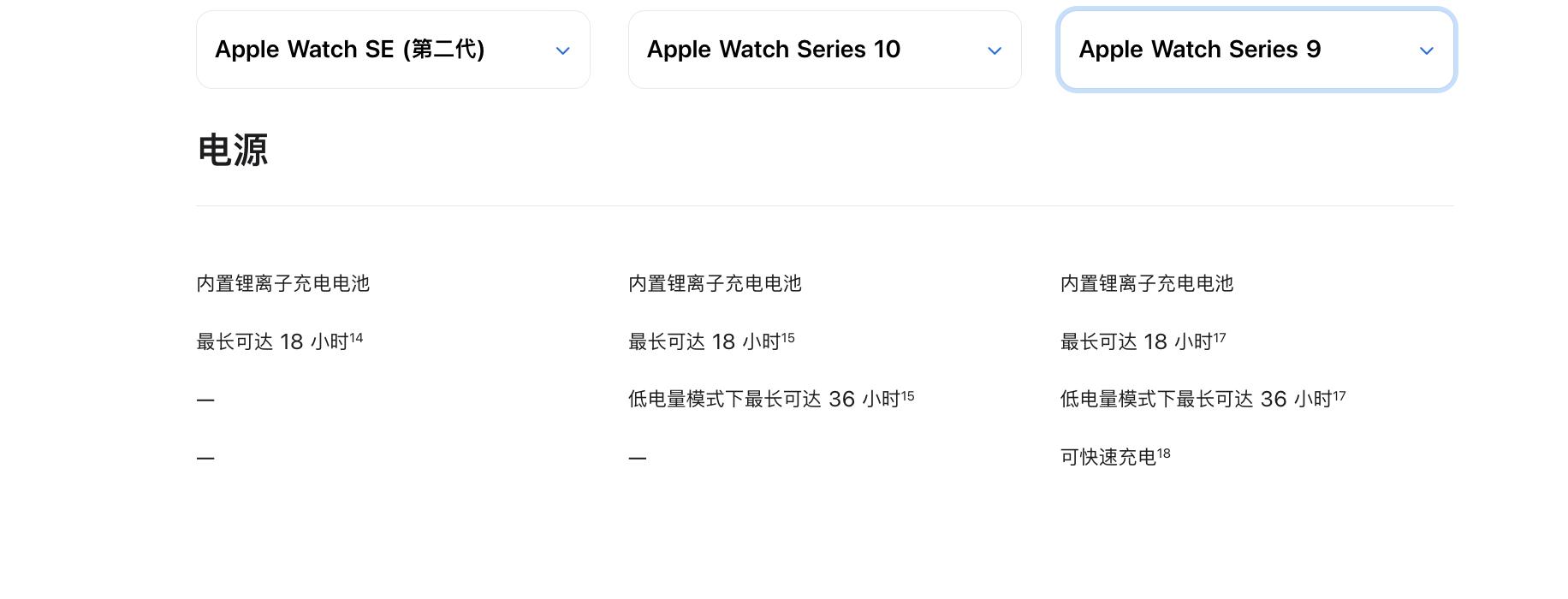 第二,因为之前新的无线充电规定的到来,Apple Watch Series 快速充电被直接取消。相比之下,上一代Apple 在官网上,Watch的描述是“大约45分钟可以从0%充到10%”,而Apple Watch Series 十是完全不支持。