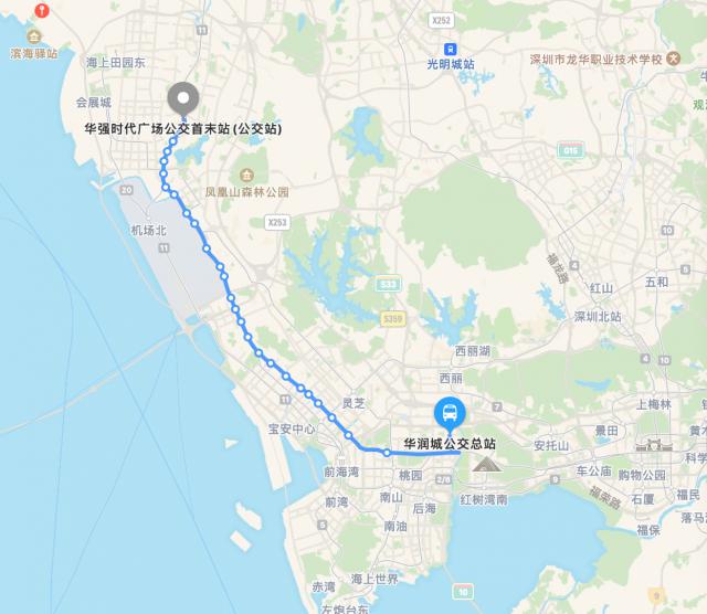 下滑:华润城公交首末站,大冲都市花园,大冲①、科技园①、深大北门①、南头②、中南花园、甲岸路口、西城上筑、金成名苑、宝安体育馆东、群贤花园、河东、西乡步行街、同仁妇产科医院、西乡盐田、兴华花园、银田创意园、华万工业园、固守红湾、联升购物广场、固守地铁站、固守地铁站北、西乡安居花园、西乡奋达科技、华盛实验学校、机场油库、机场邮政处理中心、后瑞地铁站、后瑞村、兴围、航空物流园、福围、永福园、怀德新村、福永海鲜市场②、福永地铁站、同泰时代中心、桥头、桥头地铁站、桥南、华强时代广场公交首末站