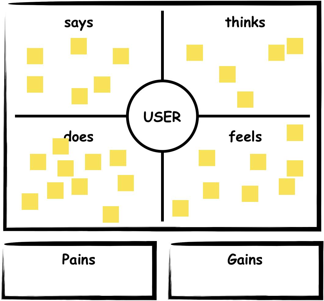 每一张同理心地图都以一个客户为中心,如果有很多用户类型,那么再独立绘制一张图片。