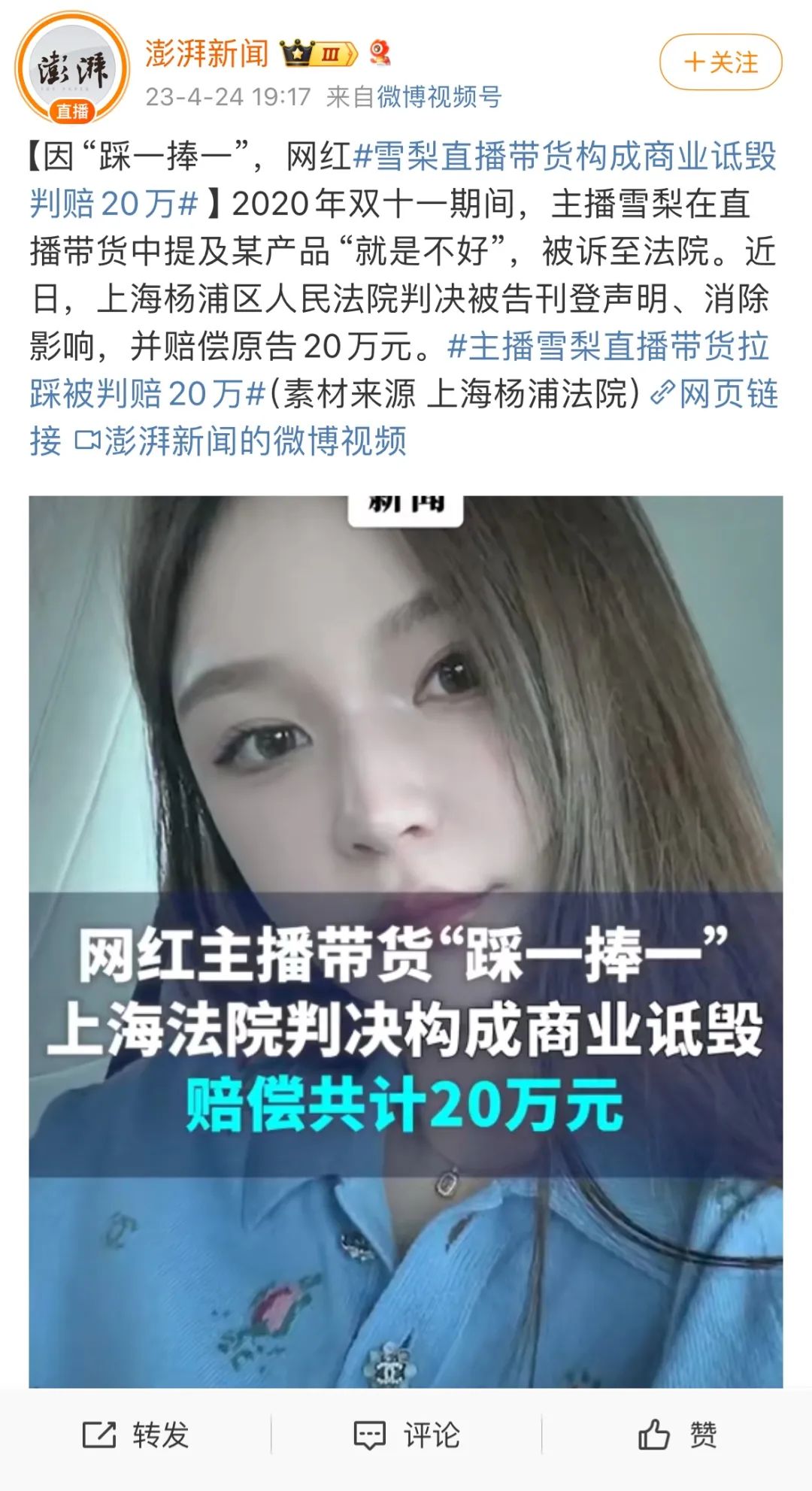 巧合的是,前不久因为被人造谣而重新引起关注的著名带货主播雪梨,也曾因为类似的行为而被推到风口浪尖。