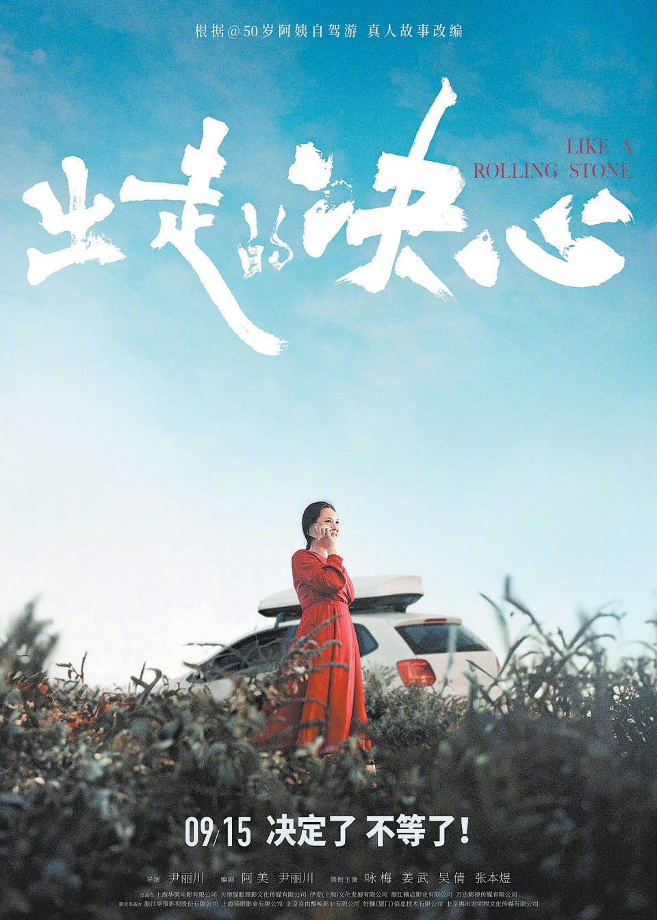 另一位女导演尹丽川的作品《离开的决心》也改编自近年来网络知名度较高的50岁阿姨的公路旅行故事。电影女主角李红一生有很多理想:18岁期待大学,25岁期待爱情,45岁期待长途旅行...但是生活中的很多经历让她不断为别人让路,很多来自家庭的压力让她最终患上了精神疾病。经过内心的煎熬,李红决心挣脱束缚,追寻自己真正属于自己的生活。影片选择了女性视角,真实地展现了当代女性在家庭和社会中所面临的压力和困难,容易引起女性观众的共鸣。在影片中扮演女主角的咏梅贡献了精彩的演技,她与姜武、吴倩、张本煜、马苏等其他主角的表演成为影片的另一大亮点。