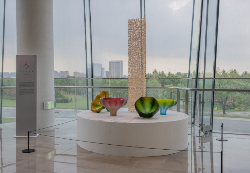 展览现场,韩国艺术家金俊龙玻璃工艺