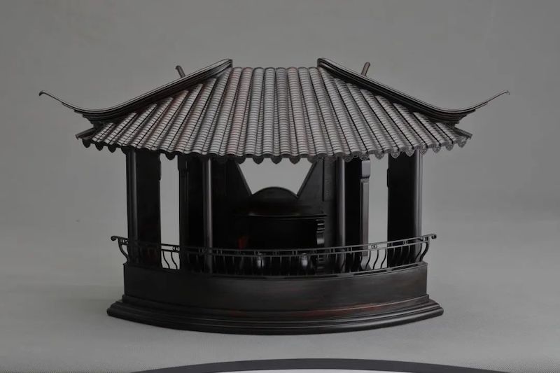 云纹是中国和韩国传统艺术中最重要的图案之一。云图案作为一种“能指”的符号,经过时代的变迁,构成了丰富的视觉面貌,但它基本上指向了万事如意的文化意义,这在中韩文化中是常见的。美国美国艺术家Sam Chung 以韩国器物所体现的普遍实质为基础,通过瓷器这一媒介,提出了对新旧事物的重新认识。来自中国的盛骁涛和何鹏飞的作品是由漆碗和银里两部分组成的,包括苏州博物馆藏的“元代雕漆镶嵌银中如意纹碗”。漆碗为木胎,两面堆漆,表面漆膜为棕色与朱色更替重叠,雕刻成上下相交的云头如意纹图案。钟锦德的《与谁同坐轩》是一部紫檀作品,主题来源于宋代苏轼的歌词《点红唇,闲倚胡床》《与谁同坐,明月清风我》。因材施艺,采用“古建筑打造木榫卯技艺”制作,精工细作,文人优雅。