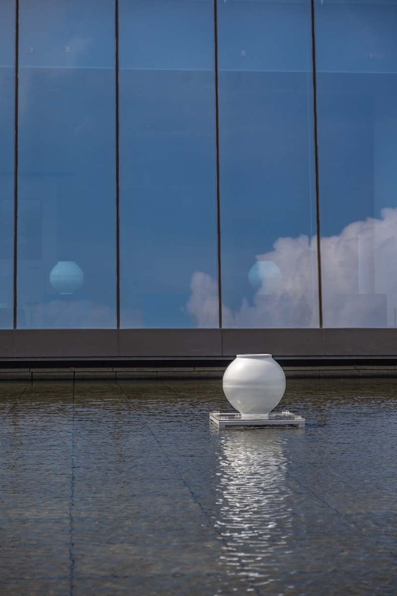 博物馆入口处,韩国艺术家朴邈镇白瓷作品《Moon Jar》