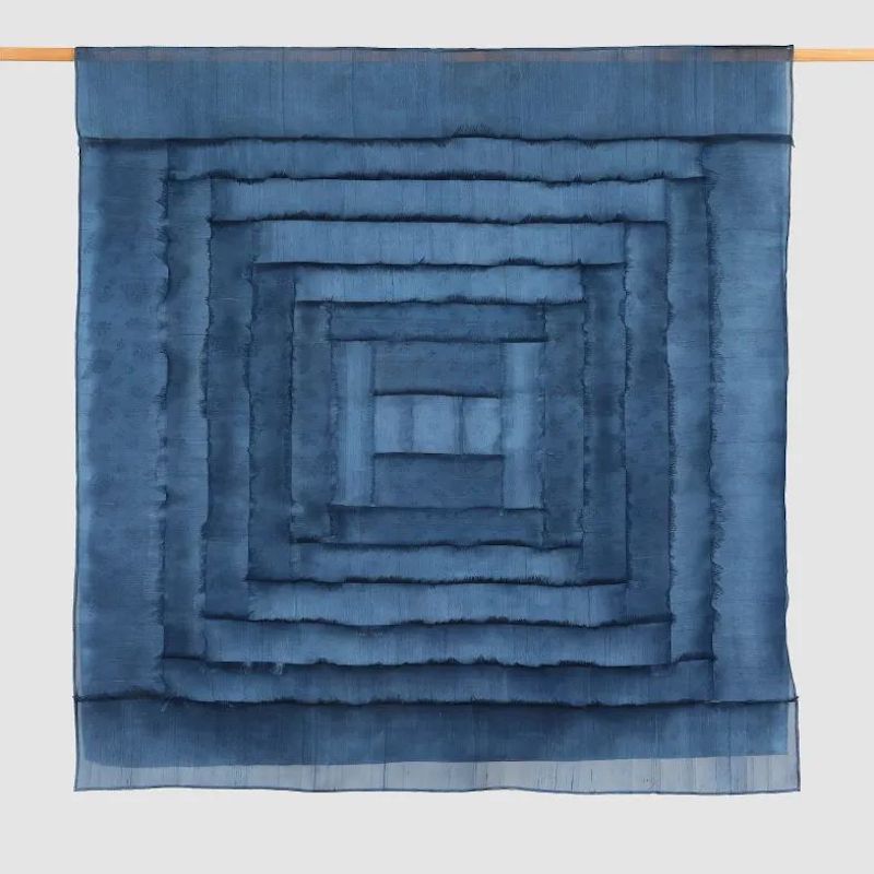 展览在展示工艺的同时,也讲述了工艺材料的殊途,同归于好。例如,韩国马鬃编织方法最初用于制作Sabangwan(程子冠帽),这是一项有着500多年历史的传统工艺。Jeong艺术家 Dahye把薄薄的马鬃编织成现代作品。在朝鲜时代(1392-1910),马鬃工艺采用轻盈透气的马鬃编织,广泛用于制作韩国男帽(帽子、吊巾、网巾等)。),也用于制作日用品。而且韩国拼布,又称Jogakbo,类似于中国的百年文化,早在朝鲜王朝时期,韩国人就会把剩下的面料碎片拼接成一个大型的Jogakbo,遵循倡导节俭和简单的思想。艺术家金琼希利用韩国传统拼布的锁边技术和韩服制作中常用的传统面料来呈现清晨的景色。
