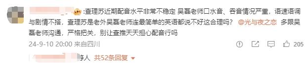 在9月10日发布的《光与夜之恋》最新限时活动下,当其他玩家表达期待时,相关查理苏的评论表明配音水平不稳定。巧合的是,在9月份发布的李泽言“浪漫就绪”限时活动PV下,大量玩家也体现了配音的问题。