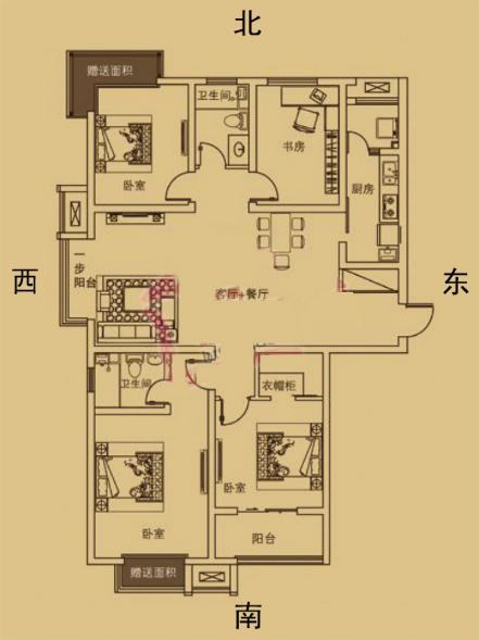南门,到底是阳台,穿堂煞,不聚气,没有靠山,有舌头。浴室和厨房在同一个宫殿里,主要的财富没有聚集在一起,这对家庭健康和家庭不和谐有影响。