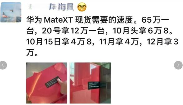 新闻发布会结束后,一位黄牛通过特殊渠道获得了10台,当天下午以38万元的价格售出了5台。。1888,000元和38,000元还算有良心的“黄牛”,朋友圈里有人直接喊出来,Mate 一个XT非凡大师现货65万元。Mate现阶段 XT非凡大师的溢价并不高,只有更高。黄牛们根本不愁卖,而是担心从哪里得到货源。