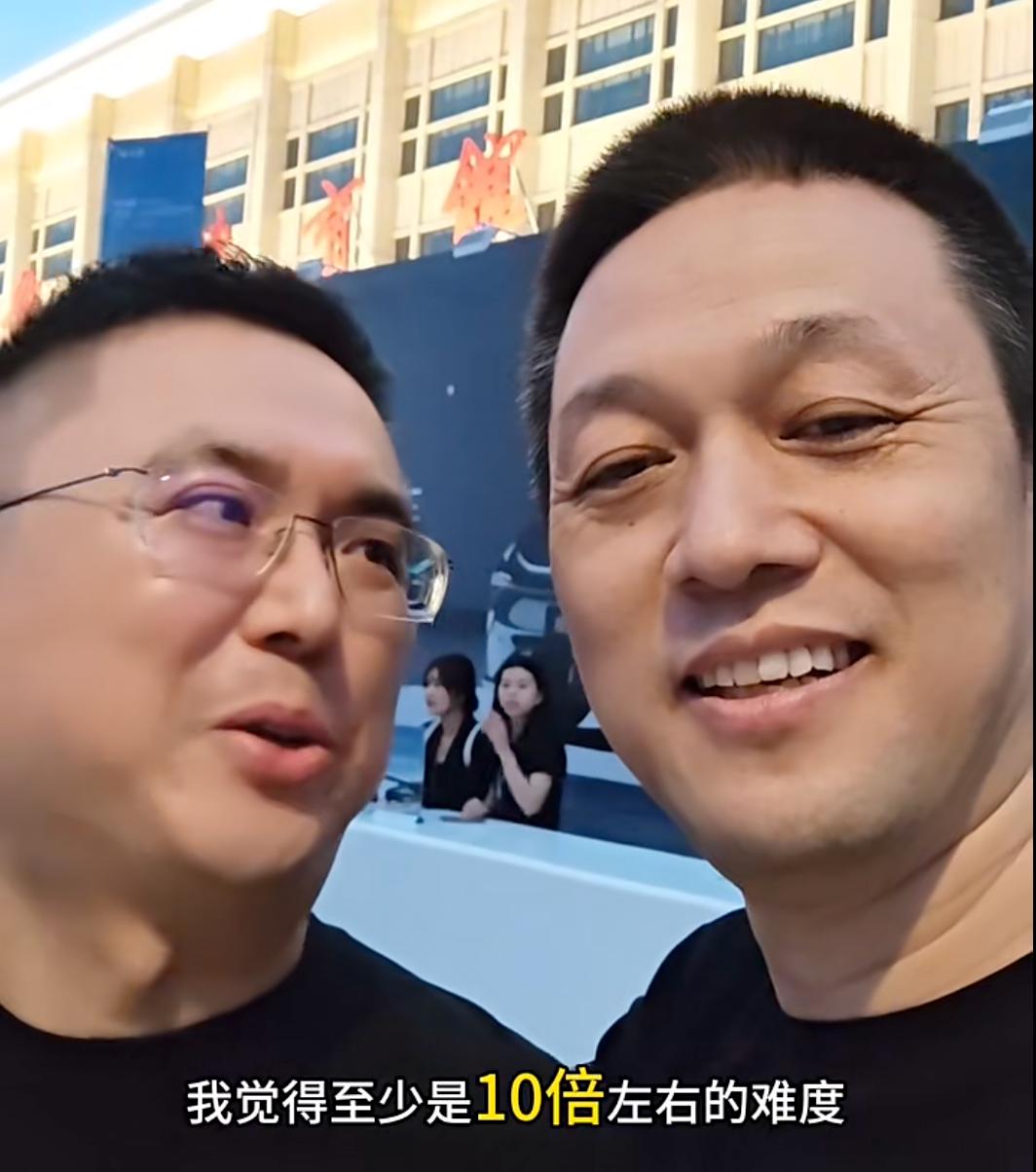 在首都体育馆外,极越汽车CEO夏一平与蔚来汽车创始人兼CEO李斌面对手机镜头交谈。
