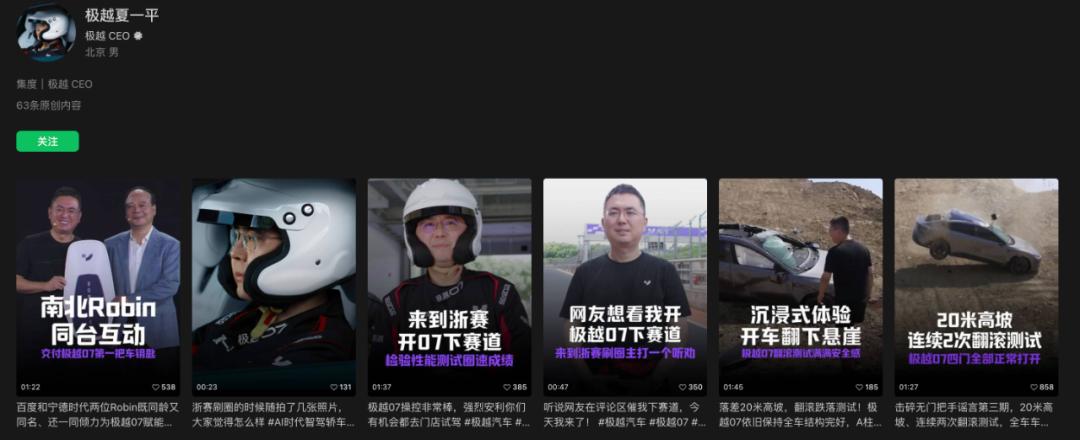 极越07上市,20万~面对30万区间的纯电动汽车市场,小米SU7、Model3特斯拉、比亚迪汉EV等完善的竞争产品必然会有激烈的竞争。除了研究作为汽车公司CEO出圈的知识,夏一平的另一个任务是找到新的叙述,迭代消费者更生动的记忆点。