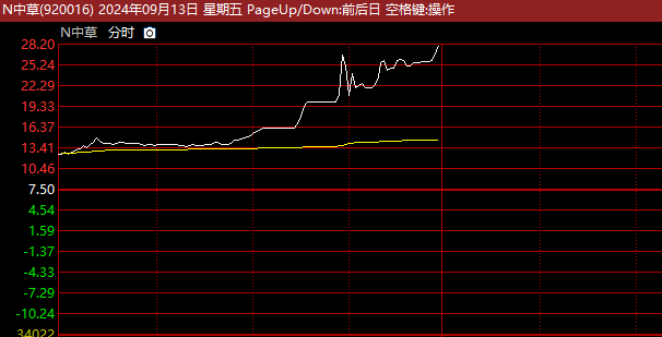 今日上市的新股中草香料表现异常活跃,盘中2度因涨幅达到限制而暂停,也未能抑制其上涨趋势,截至中午收盘,以最高价29.96元收盘,较发行价7.5元大幅上涨299.35%。