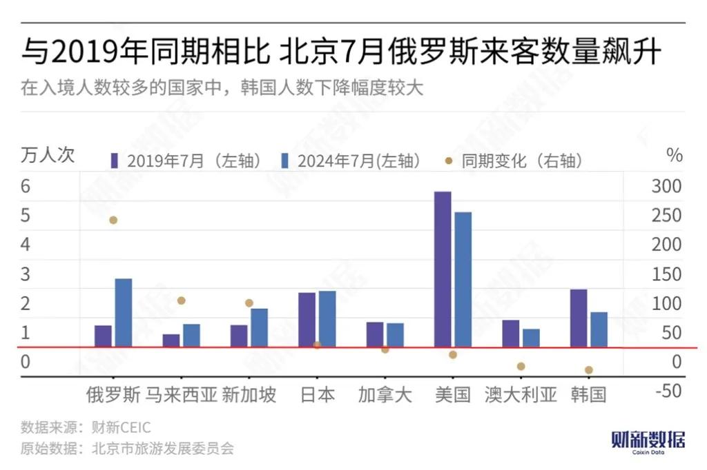 就国家而言,俄罗斯北京入关人数大幅增长,比疫情前同期增长216.6%。