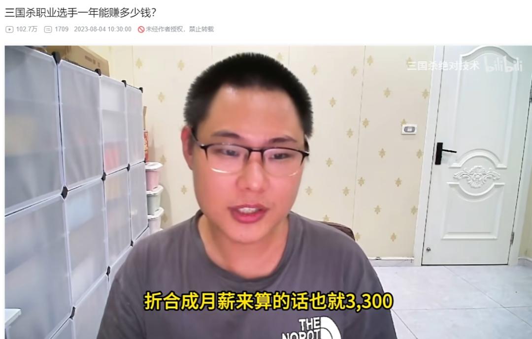 据哔哩哔哩UP大师“三国杀绝对技术”介绍,作为“三国杀”的专业玩家,既没有签约费,也没有稳定的工作,收入完全取决于比赛奖金。即使是顶级球员,夺冠后年薪也只有4万人民币,月薪3300元左右。小游戏的奖励甚至只是游戏中货币的“元宝”。