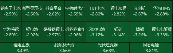 今天,新能源赛道股集体停火。锂矿业概念下降,天齐锂业和赣锋锂业领跌;固体电池概念全天低迷,南都电源下降近8%;调整光伏概念,泰嘉股权下跌。