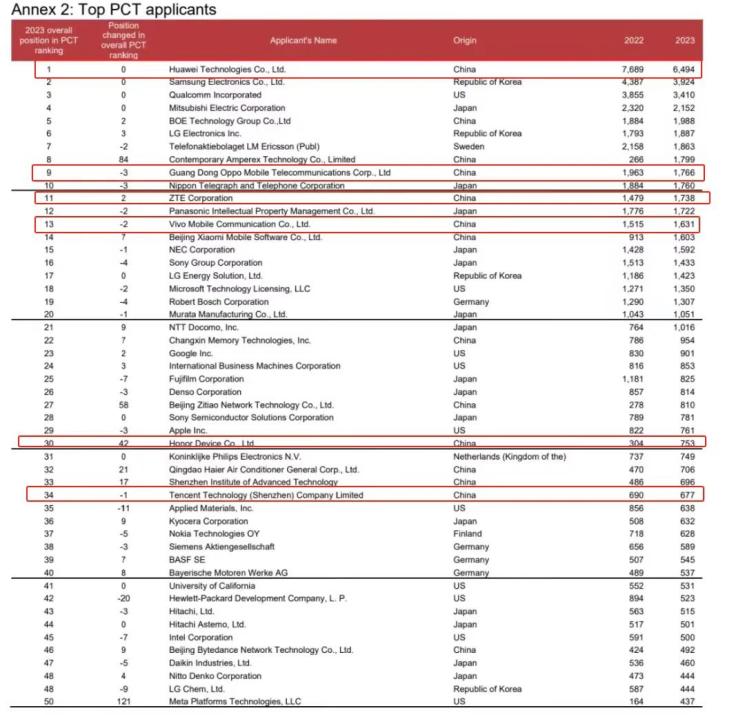 报告显示,“深圳-香港-广州”集群PCT专利申请超过11万项,相当于北京、上海-苏州、南京、武汉、杭州等集群的总和。PCT专利申请主要来自科技企业的贡献。2023年,共有14家中国公司入选全球PCT专利申请前50名,其中一半来自广东。