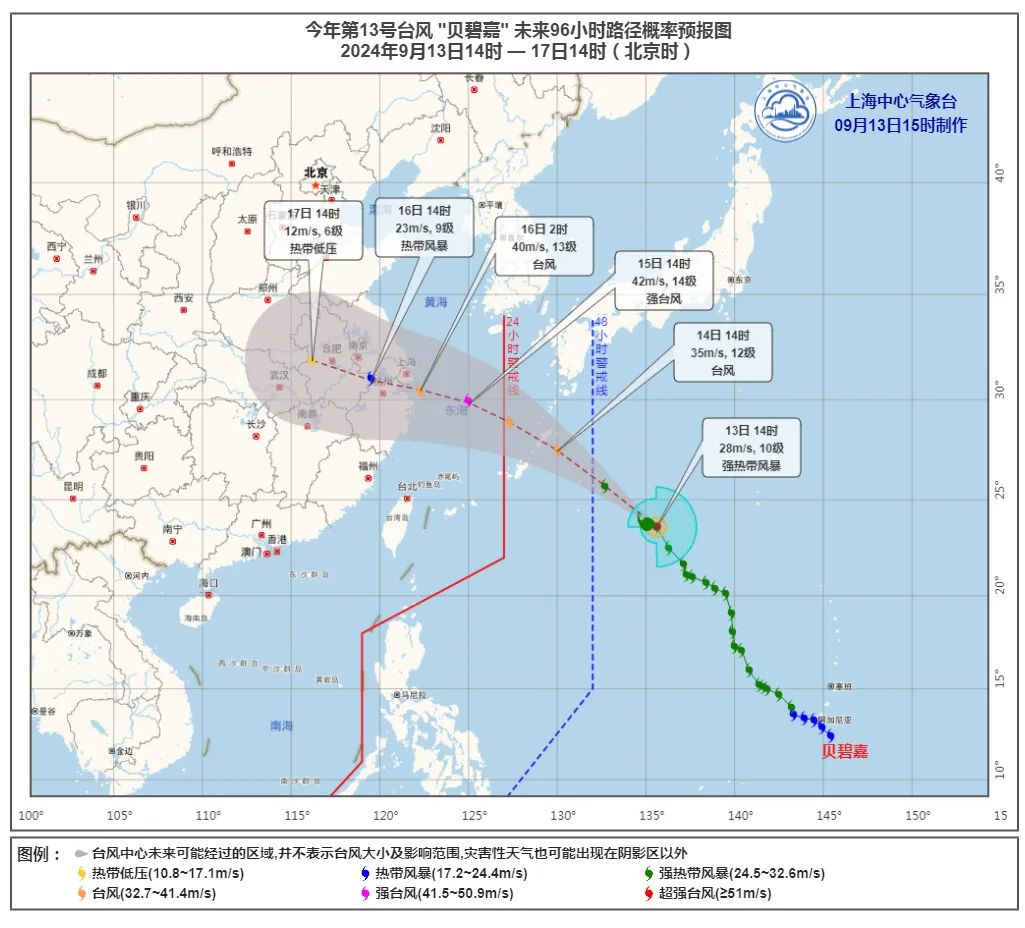 今日14时13日,台风“贝碧嘉”中心位于距离琉球群岛那霸市东南方约南方。 850 在23.6公里的太平洋洋面上 °N、135.6 °E),强度为强热带风暴级,距浦东南汇嘴约1570公里。