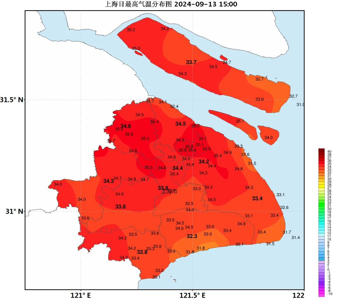 今日上海蓝天白云格外美丽。但是在太阳的燃烧下,温度并不“美丽”。城市徐家汇站最高温度为34.4℃,各区嘉定站最高温度为34.7℃。