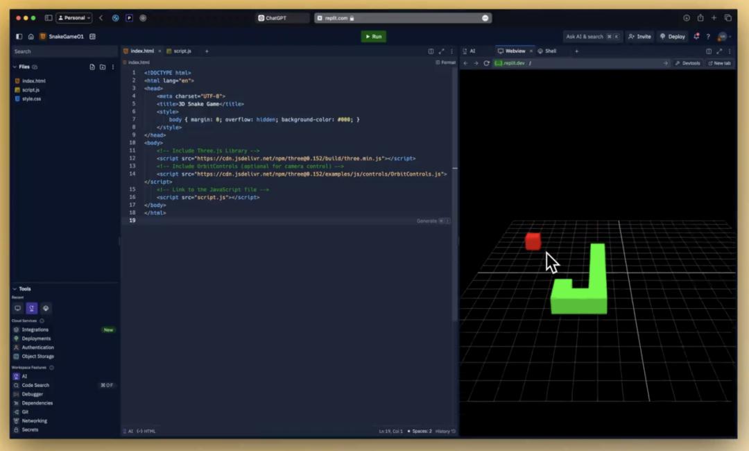 X上的@Ammaar Reshi使用了极其简单的prompts,只用了一分钟就写出了一条3D贪吃蛇,而且o1还手把手教他如何使用代码。