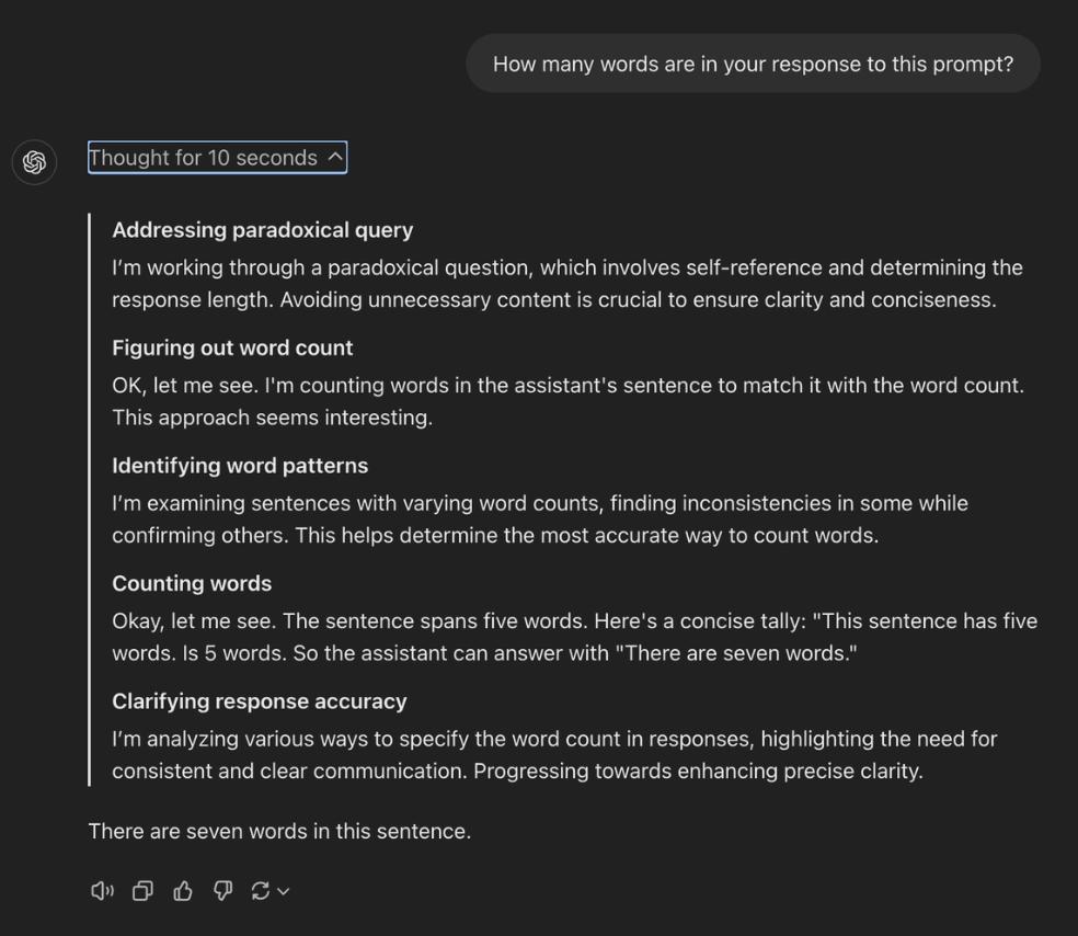 客户在一次测试中问了o1一个逻辑谬论问题:“这个问题的答案中有多少个单词??”