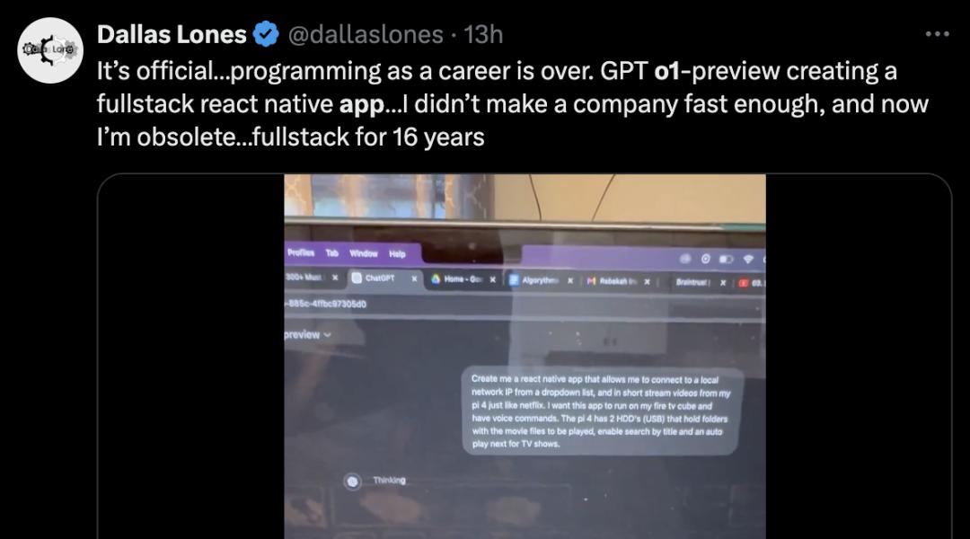 OpenAI新模型o1的可怕之处在于“编程作为一个职业在今天结束”
