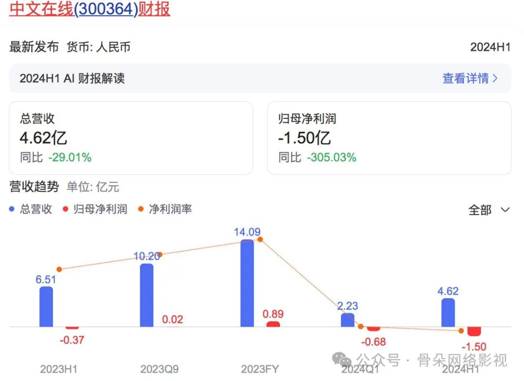 2024年第一季度业绩出现营收和净利润“双降”,2024年第一季度营业收入约1.77亿元,同比下降81.69%。;扣除非经常性损益的上市公司股东净利润为144.01万元,同比下降98.8%。从财务报告来看,成本收入、净利润“双降”与AIGC产业布局有一定的必然联系。
