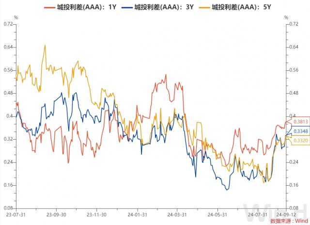 5. 最近城投债(AAA)每个期限的利差走势和数据。