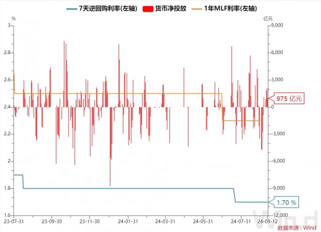 央行 9 月 12 日以固定利率、数量招标方式进行 1608 亿元 7 天期逆回购操作,操作利率 1.70%。Wind 数据显示,当天 633 逆回购到期1亿元。