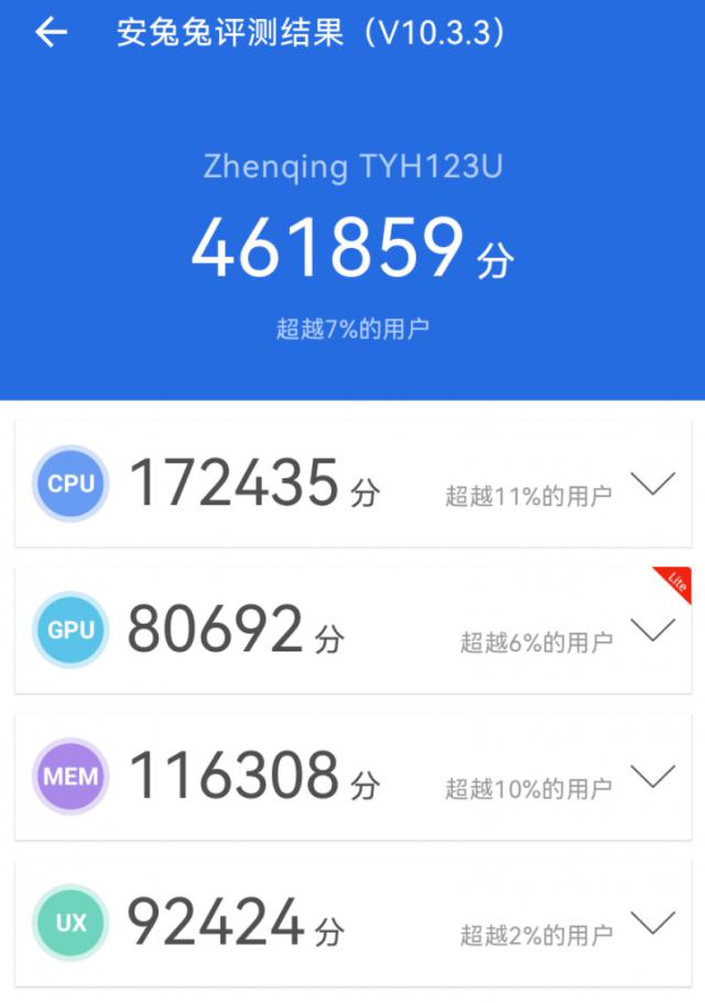 首先我试着用安兔兔跑了下分,发现它有下分, 46W 分,差不多就是骁龙 695 的水准: