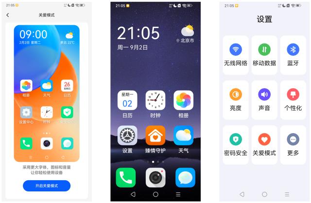 例如手机启动激活默认会进入图标,字体更大,界面更简洁。 " 关怀方式 ",手指在手机上做的每一步操作最终都会通过语音同步播放。这个功能对于视力不好的老年人来说可以说是非常实用的。