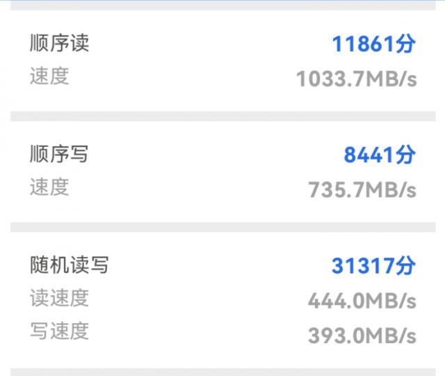 配置方面,真情实感 20 配备了一个来自紫光展锐的展锐 T760 Cpu,一共提供有 4 128GB 和 8 128GB 两个版本,其中内存使用的是 LPDDR4X,闪存没有说是什么规格,但是从读写检测结果来看应该是什么? UFS3.1。