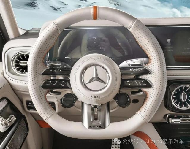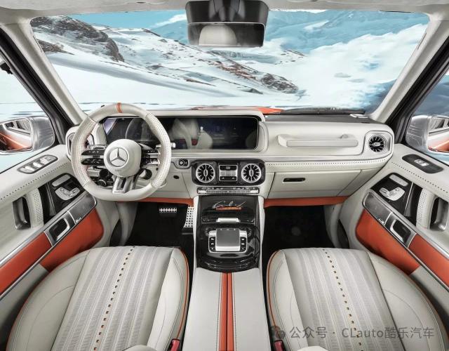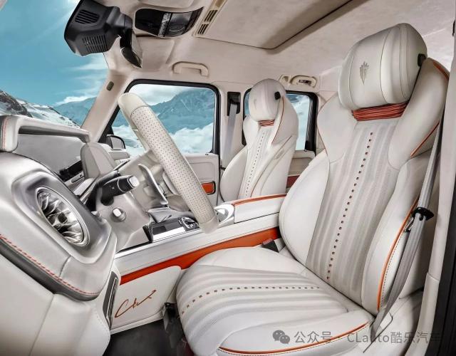 在细节上,G-Vintage 车身周围还装饰了一个细银色的图案,并配备了一个新的备用轮罩,颜色是橙色,外面是镀铬材料。前后还配备了碳纤维保险杆,上面有闪亮的镀铬饰面,车轮是专门设计的。 20 英尺饼复古轮毂,颜色为车身同款镀铬及橙色。