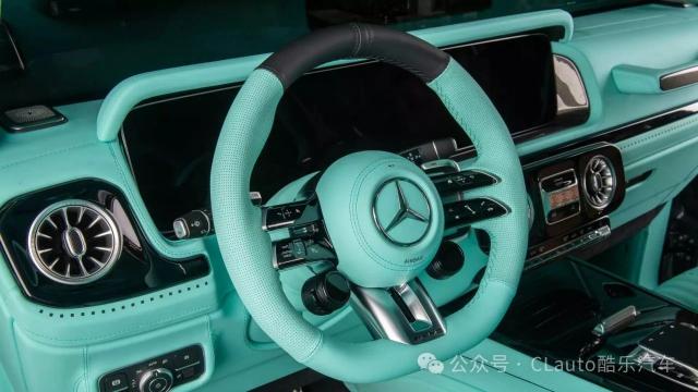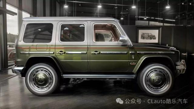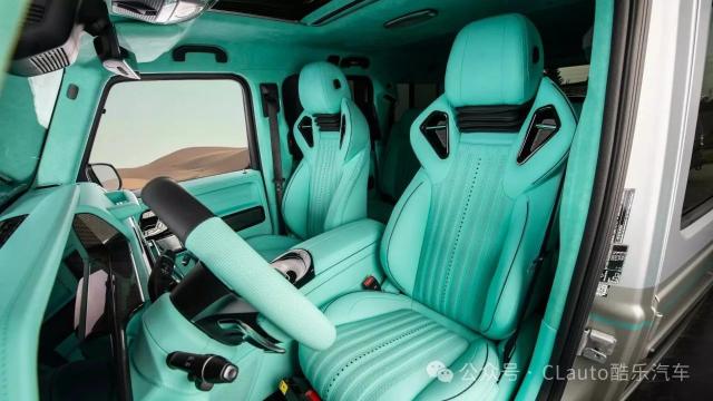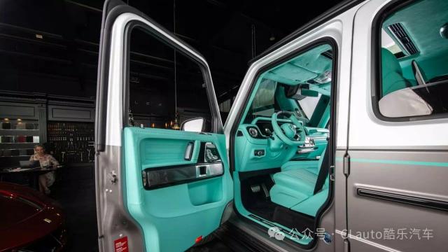 第三款 G-Vintage 外观更低调,涂有银色和绿色条纹。虽然外观简单,但内饰同样豪华。车内几乎每个表面都覆盖着明亮的绿色皮革和低调的黑色涂层,对比非常明显。