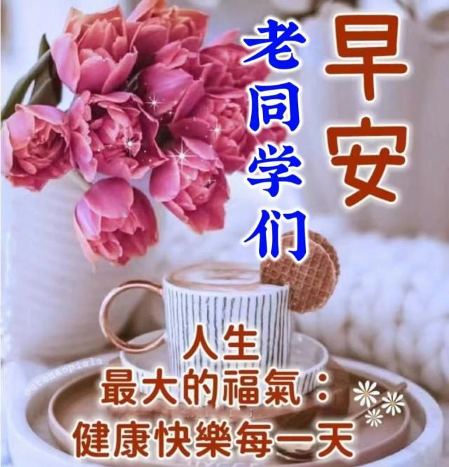 早晨好图片问候关注老同学的问候:早上好吉祥。