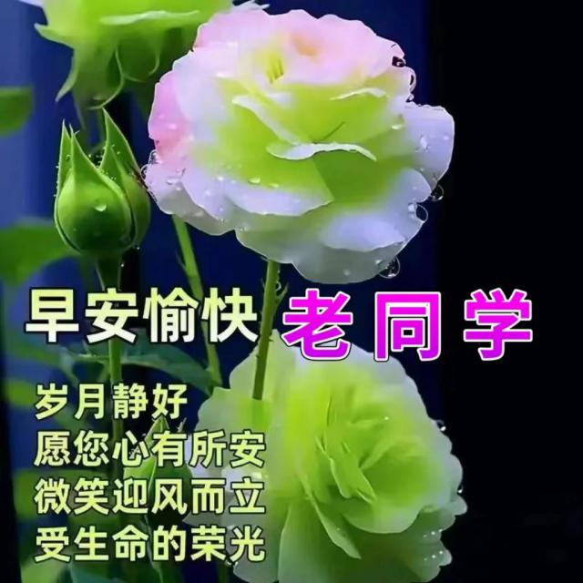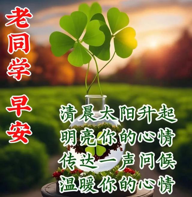 一份祝福总是在晨光中到来。一份快乐总是像晨光一样绽放。一份关注,永远陪伴你每天的精彩。一份美好的工作,永远祝你新的大胆。愿我的祝福让你每天都开心,幸福永远在那里。老同学,早上好!