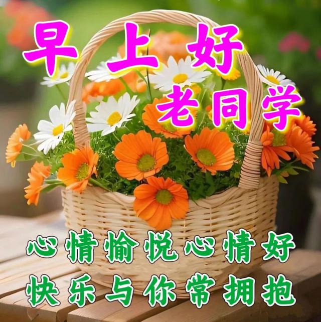 新的一周,送上祝福!愿你每天心情舒畅快乐;身心健康,平安相伴;家庭幸福,幸福无限;幸福的生活,精彩的工作,繁荣的工作,好运!老同学,早上好!