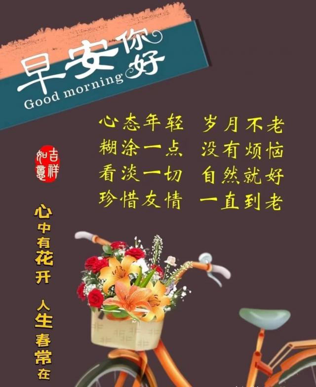 早上醒来微笑,心情愉快,精神好;活络胫骨扭腰,健康生活每一秒;工作芝麻越来越高,每天都有好运!愿早上心情愉快,早上好!