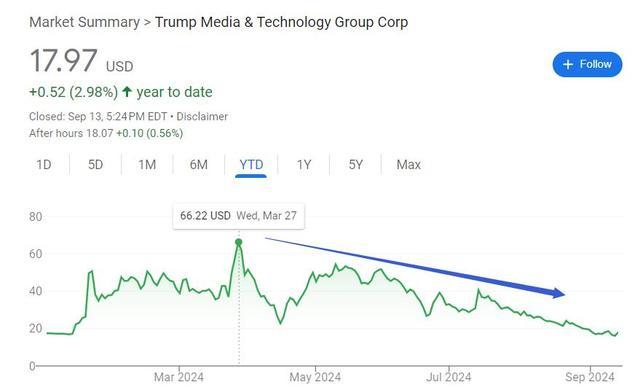 据媒体报道,随着特朗普回到推特的社交平台, X,最近几周,这种当选概率与股价的相关性已经分裂。然而,华尔街的故事注意到,特朗普和哈里斯的第一场电视辩论在周二晚上结束后,特朗普的交易热度进一步下降,特朗普媒体周三暴跌约10.5%,创下3月份上市以来收盘的最低纪录。
