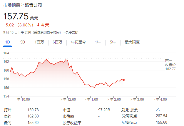 受此影响,波音股价在周五盘中一度下跌超过4.1%。