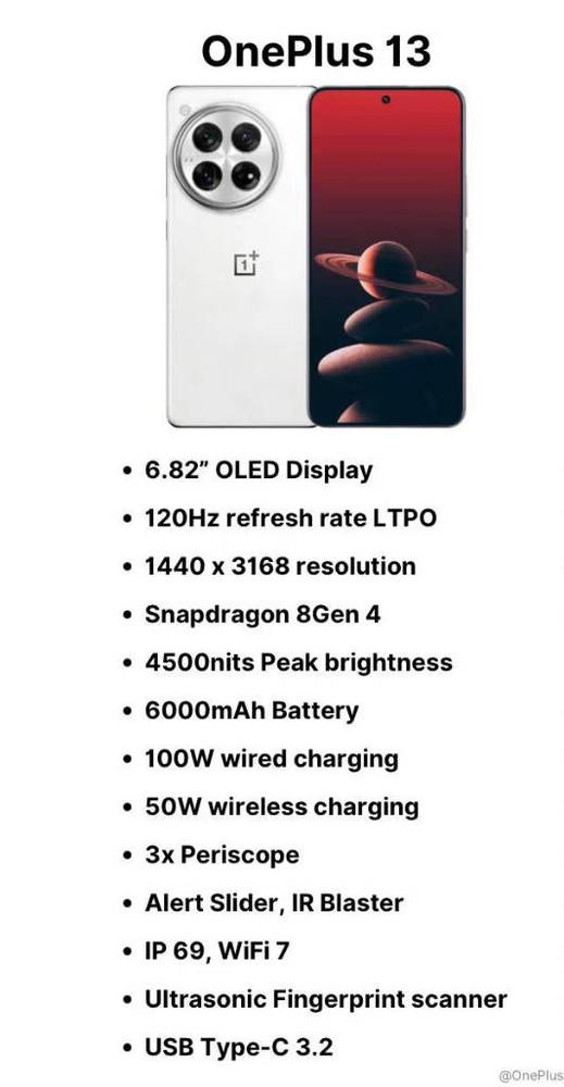 最近,海外媒体“ ONEPLUS CLUB "整理了一加下一代旗舰手机一加 13 配置信息。