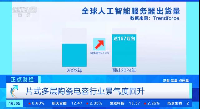 市场调研机构预测,2024 年 全年人工智能服务器出货量将达到 167 万台,同比增长 这给片式多层陶瓷电容市场带来了新的增长点,41.5%。