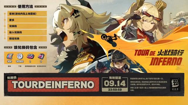 300 菲林兑换码:TOURDEINFERNO,有效期至 9 月 14 日 23:59:59
