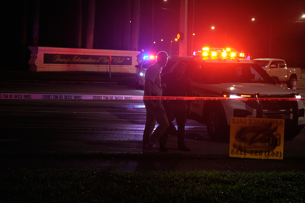 当地时间2024年9月15日,美国佛罗里达州西棕榈滩的高尔夫俱乐部当天在特朗普打高尔夫时,球场附近出现了一名持枪男子,现在警方已经关闭了球场。视觉中国 图